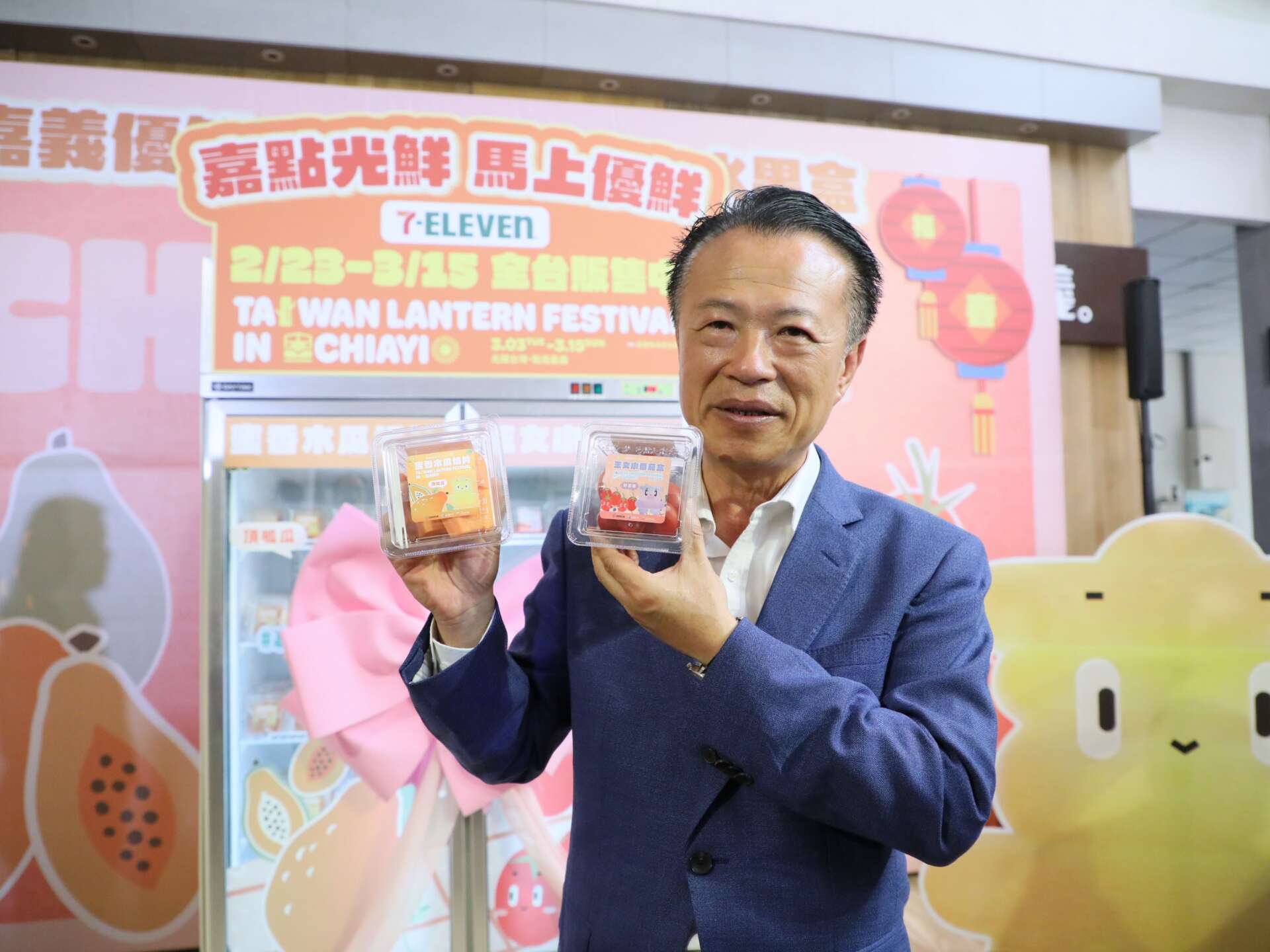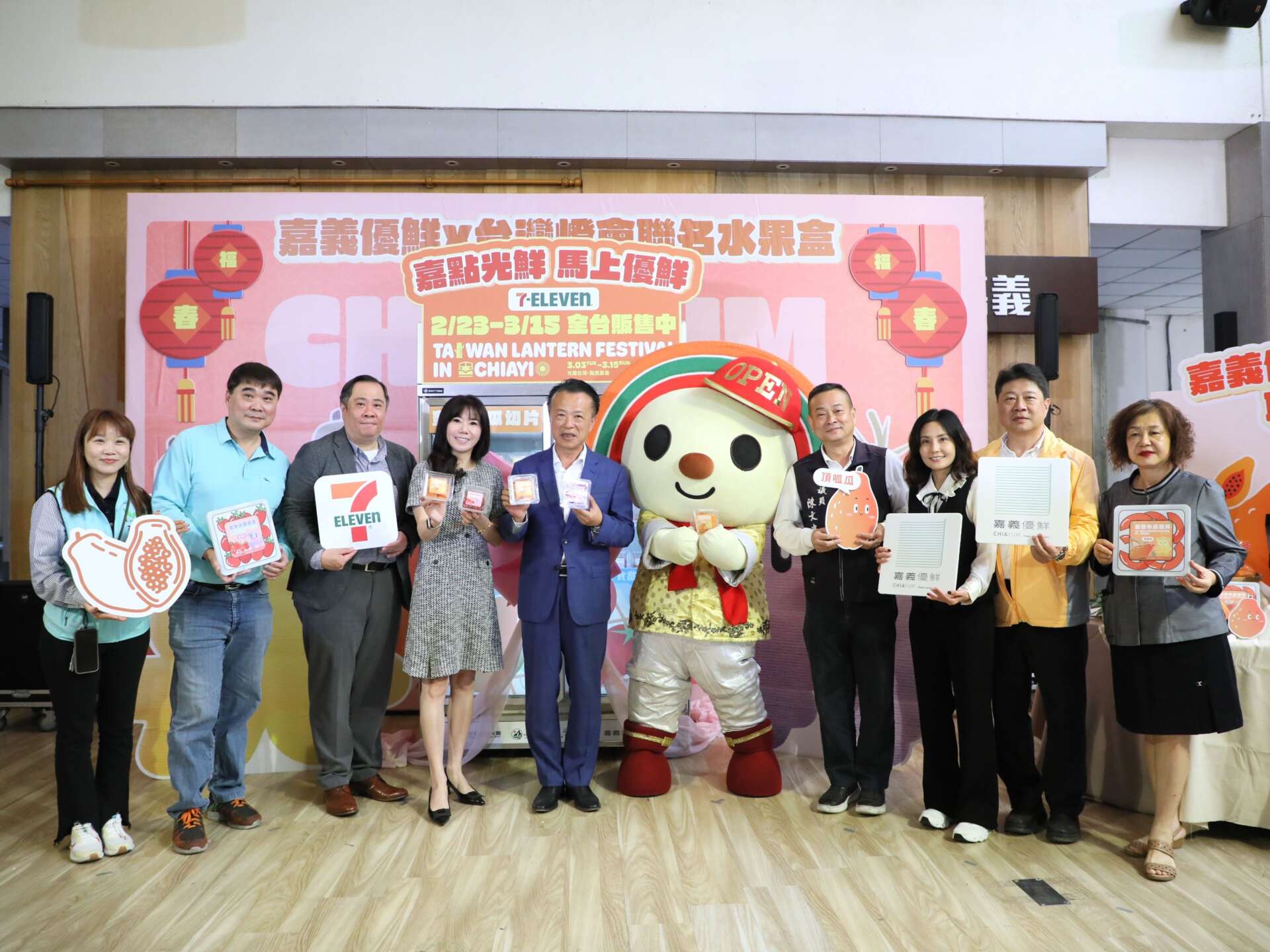 今(23)日新春開工,為迎接即將登場的「2026台灣燈會」,嘉義縣農業共同品牌「嘉義優鮮」、統一超商股份有限公司(7-ELEVEN)及福和生鮮股份有限公司強強聯手,推出「台灣燈會聯名水果盒」。超人氣吉祥物「OPEN將」也驚喜現身力挺,為新品開箱造勢,象徵「甜蜜上工」。嘉義優質農產水果盒即日起正式上架,全台7,300間7-ELEVEN門市同步販售。